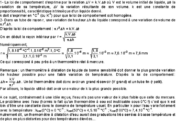 Traduction littérale d'un énoncé de loi, thermomètre à dilatation de liquide, calcul numérique