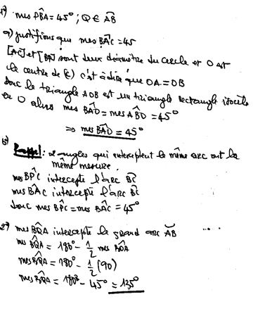 Démontrer qu'un angle dont les sommets se trouvent dans un cercle a pour mesure 45°