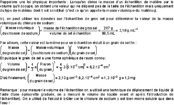 calcul numérique, masse volumique, évaluation de la masse d'un grain de sel