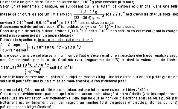 Calcul numérique, électroneutralité des solides ioniques, forces électriques