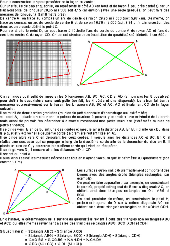 Calcul numérique, évaluation raisonnée de la surface d'un terrain en forme de quadrilatère, utilisation d'un tableur