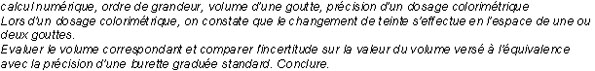 calcul numérique, ordre de grandeur, volume d'une goutte, précision d'un dosage colorimétrique