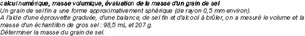 calcul numérique, masse volumique, évaluation de la masse d'un grain de sel