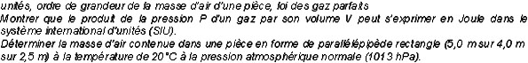 Unités, ordre de grandeur de la masse d'air d'une pièce, loi des gaz parfaits