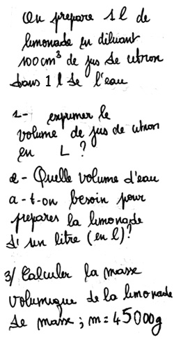 Volume de jus de citron, eau et limonade