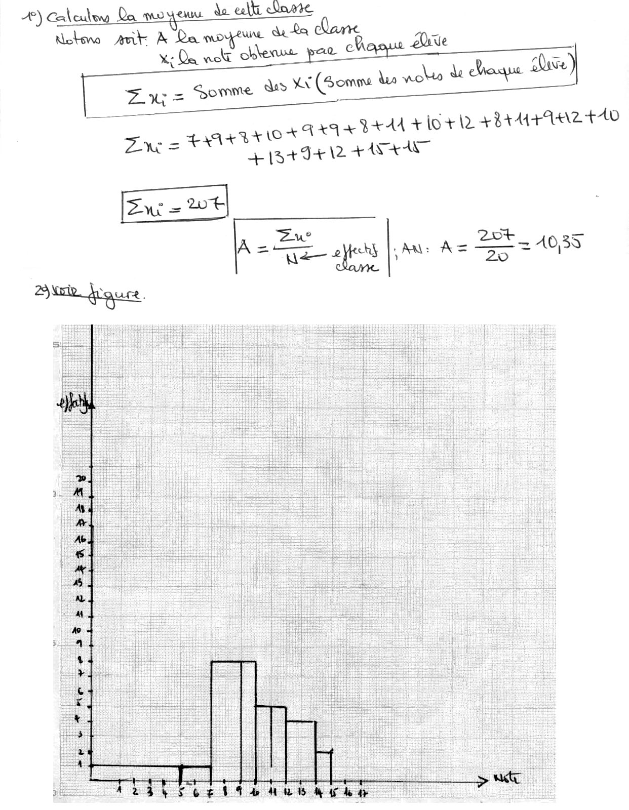 Statistiques, moyenne et diagramme à bande des appréciations