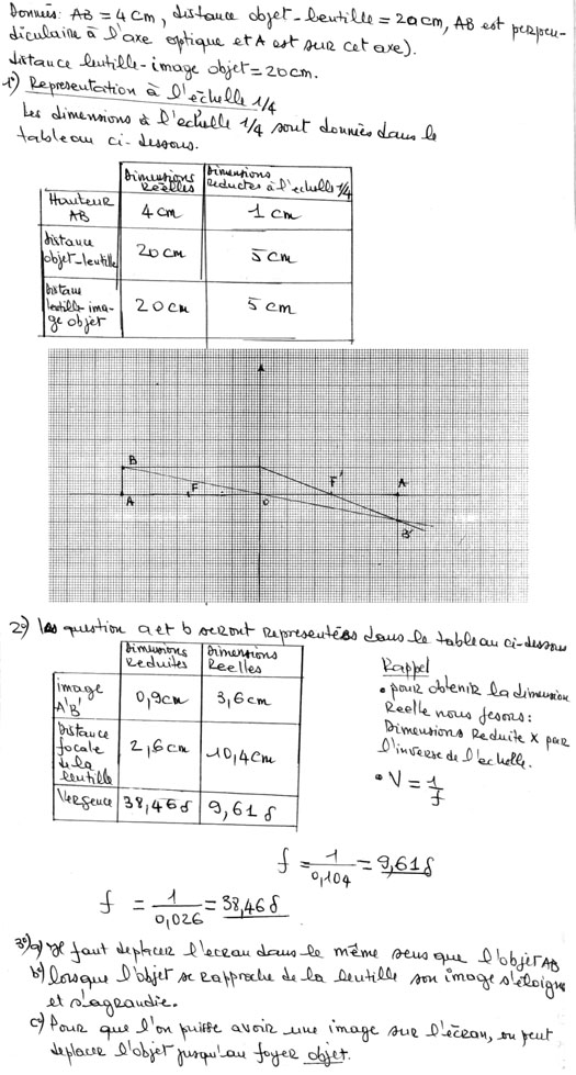 A partir d'une lentille, un objet lumineux a une image. Calculez la grandeur de cette image, la distance focale de la lentille, puis étudiez la en rapprochant l'objet