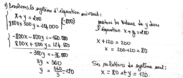 Résolvez un système de deux équations avec 2 inconnues X et Y.