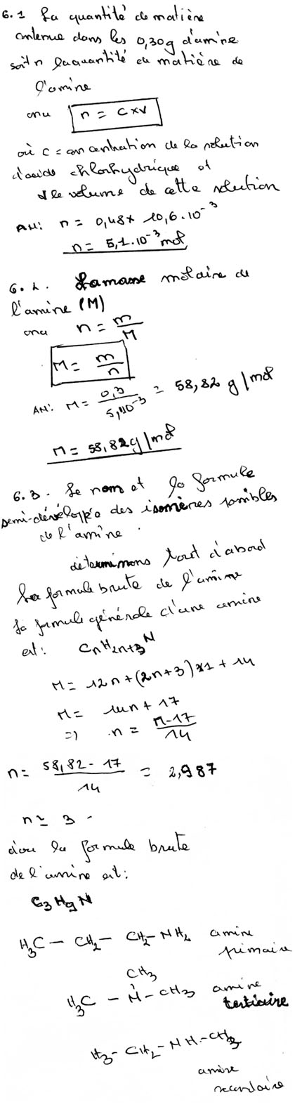 Dissolution de l'amine saturée