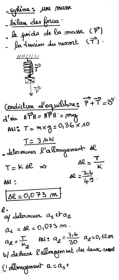 Allongement de deux ressorts collés