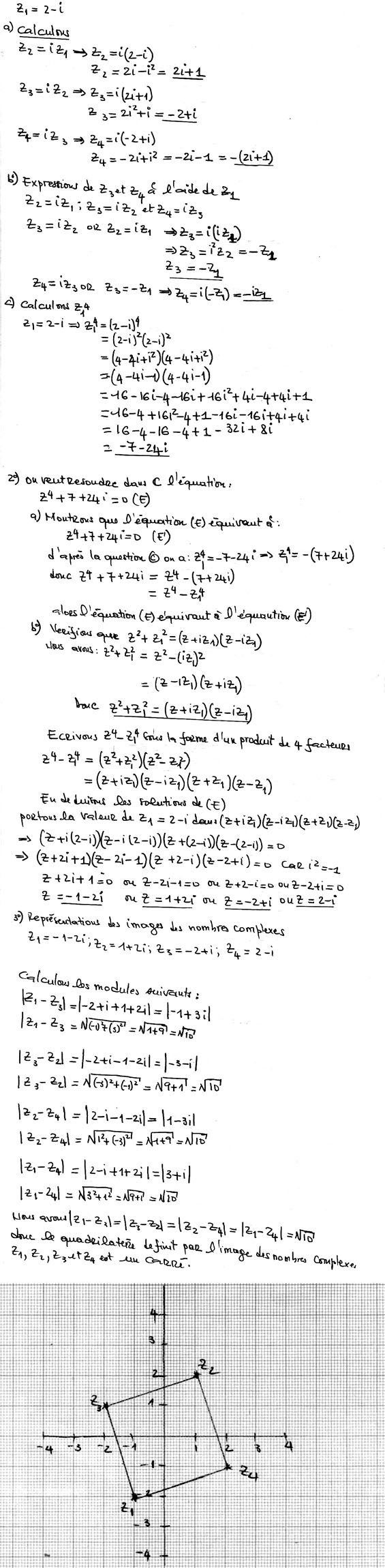 Calculez des nombres complexes à partir d'un autre nombre complexe, résolvez des équation, placez des points sur un plan complexe et démontrez ces points forment un carré.