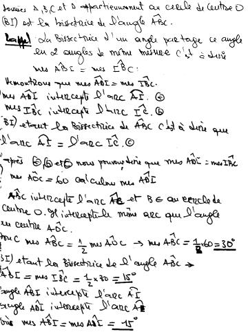 Dans un cercle de points, demontrer la valeur d'un angle à partir d'une bissectrice.
