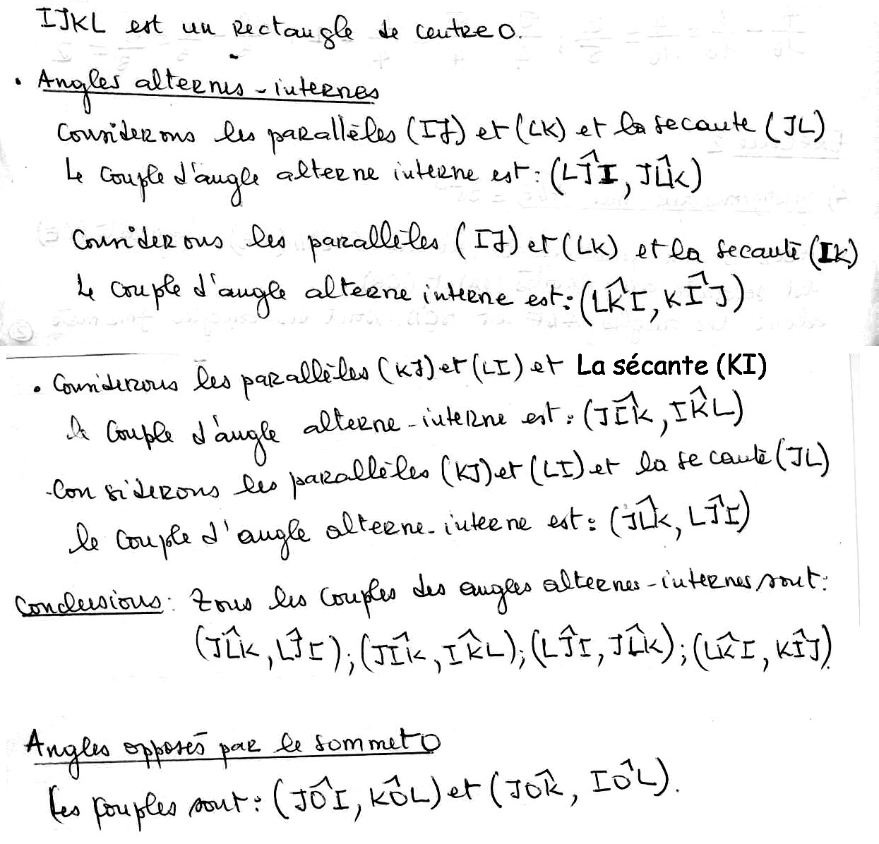 Couple d'angles alternes / Internes