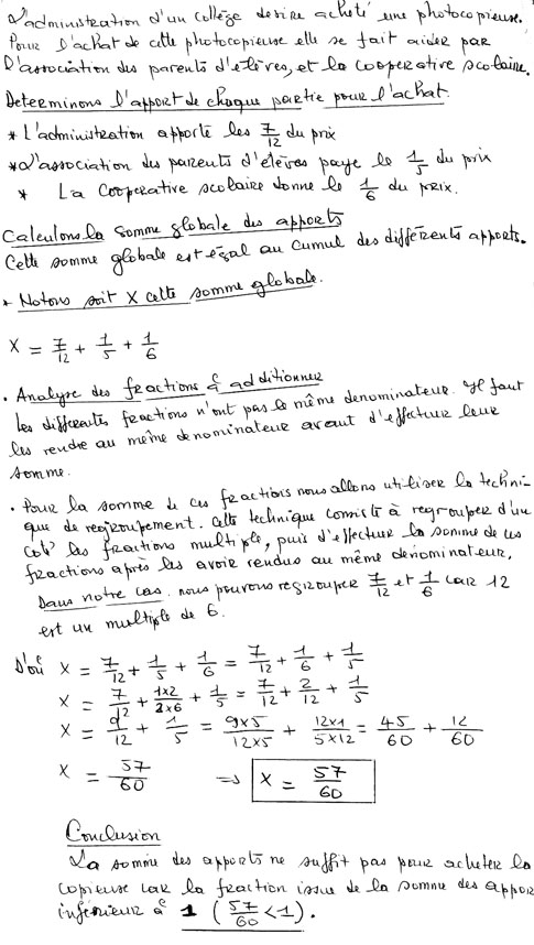 Le prix de la photocopieuse à partir des fractions