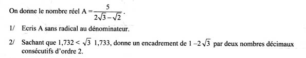 Nombre réel sous forme de fraction avec racine