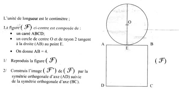 Image d'une figure (carré + cercle) par une symetrie orthogonale