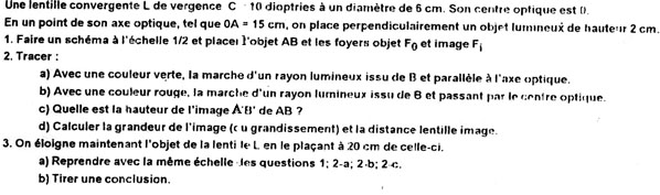 Pour un objet placé sur une lentille convergente, faire un schéma. Tracer les différents rayons, placer les foyers. Déduire la hauteur de l'image. Traiter le cas où on éloigne l'objet de la lentille.