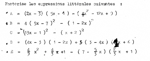 Factorise les expressions littérales