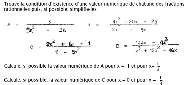 Trouvez la condition d'existance d'une valeur numérique pour chaque fraction rationnelle. Ensuite, simplifiez - les. Calculez par la suite les valeurs numériques pour certaines valeurs de l'inconnue X.