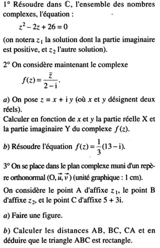 Résoudre des équations de nombre nomplexe, déterminer les parties imaginaire et réelle d'un nombre complexe et démontrez qu'un triangle est rectangle.