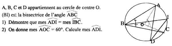 Dans un cercle de points, demontrer la valeur d'un angle à partir d'une bissectrice.