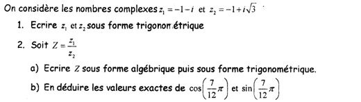 Forme algébrique et trigonométrique