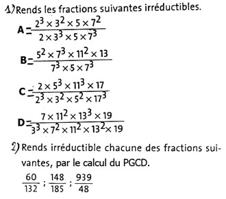 Fractions irréductibles et PGCD