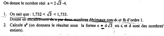 Donnez un encadrement d'un nombre réel avec racine d'ordre 1, calculez ce nombre élévé au carré.